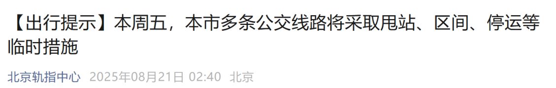 8.11路(孛罗营-大北窑东),8月23日16:10至保障结束,发孛罗营至九龙山区间。