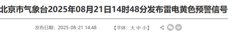 2025年08月21日14时48分北京发布雷电黄色预警信号