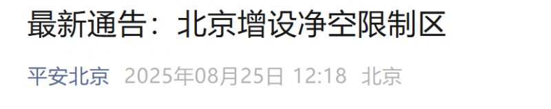 8月24日,北京市人民政府发布关于增设净空限制区的通告: