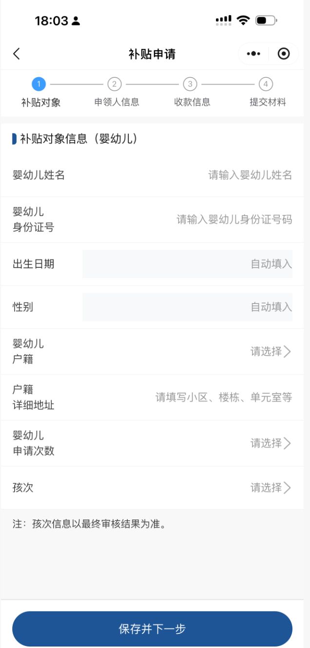 进入小程序后,点击育儿补贴海报