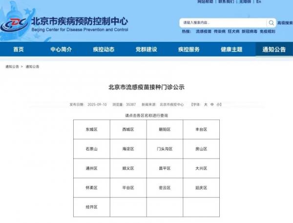 2025北京流感疫苗接种政策最新消息查询(9月10日更新)