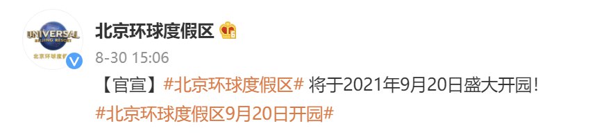 北京环球影城开园时间:2021年9月20日