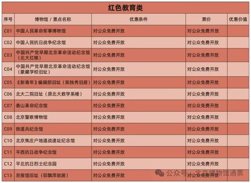 收录的博物馆和优惠方式