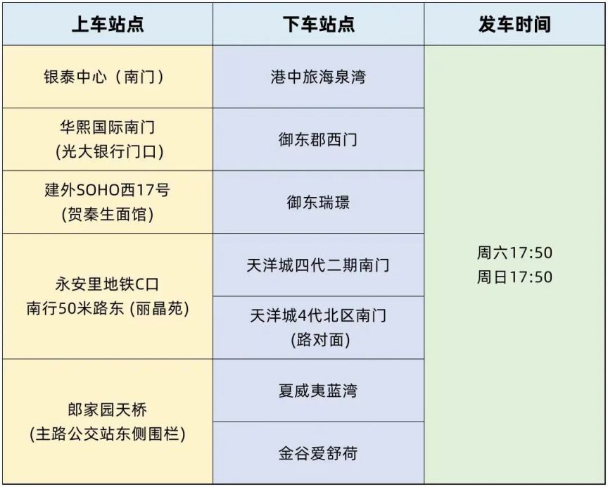 新增班次发车时间为周六日7:20、9:00。设置上车站点7个,下车站点6个。站点如下: