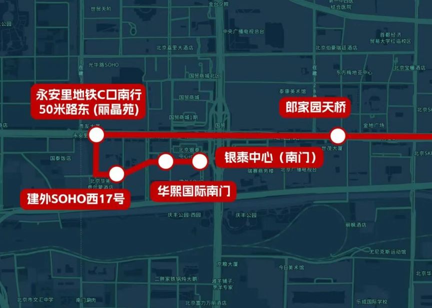 (18:20国贸地铁G口公交站,18:27郎家园天桥)