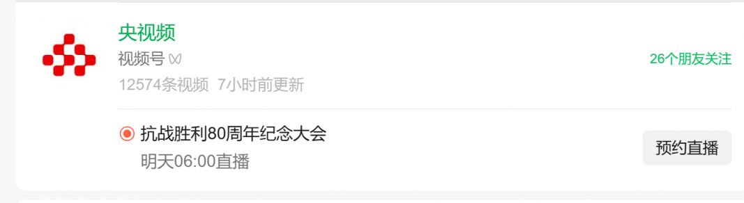 2025九三阅兵直播预约入口:微信直接搜央视频视频号即可预约