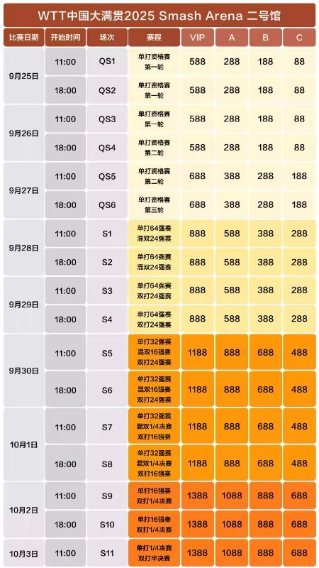 》》2025北京wtt中国大满贯赛程公布(时间+票价)