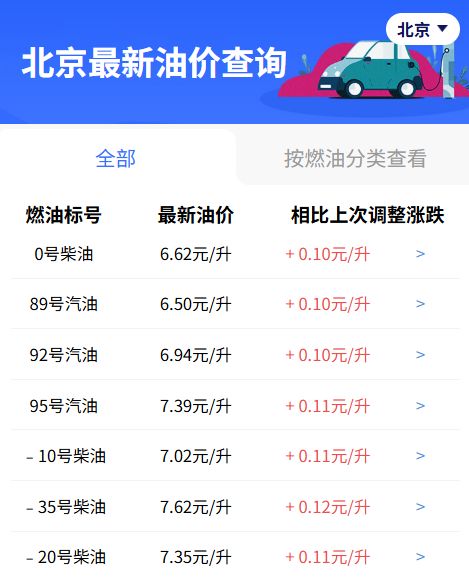 >>重磅推荐专题:全国最新油价查询 (第一时间获取油价调整最新消息)