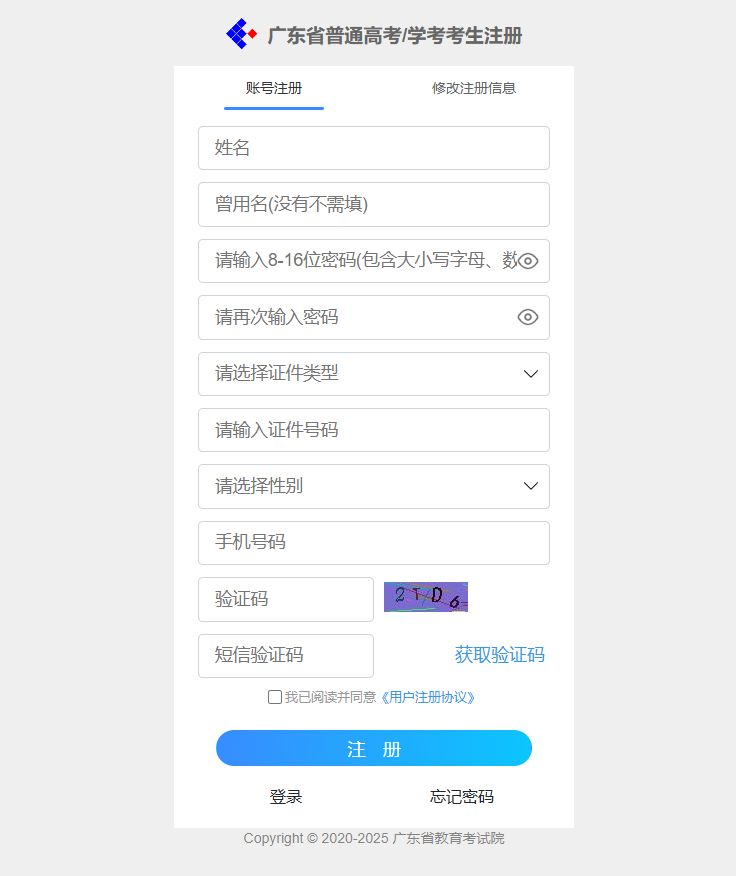 注册入口:广东省普通高考学考报名系统