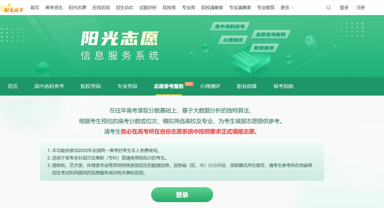 2025阳光高考网入口 https://gaokao.chsi.com.cn/zyck/zy/