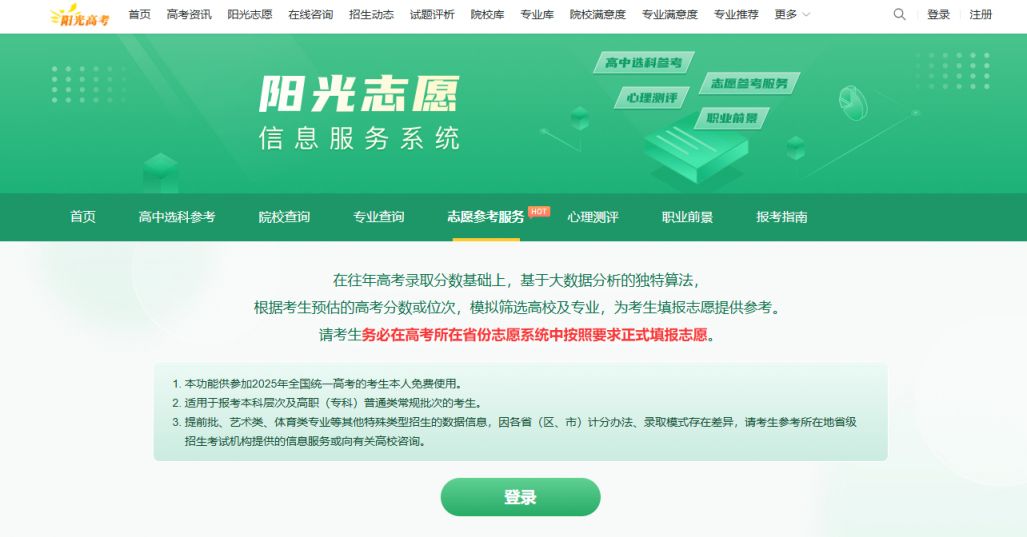 3、帮你免费推荐志愿:系统可以根据你的高考成绩、往年录取情况,然后结合大数据给你推荐志愿