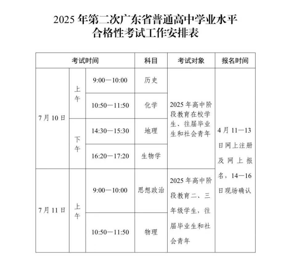 2025年第二次合格性考试科目为思想政治、物理、历史、地理、化学和生物学等6门,各科目均为新课标题型(按照2017年版2020年修订的普通高中课程方案和学科课程标准命题),均为选择题,考试时长均为60分钟。