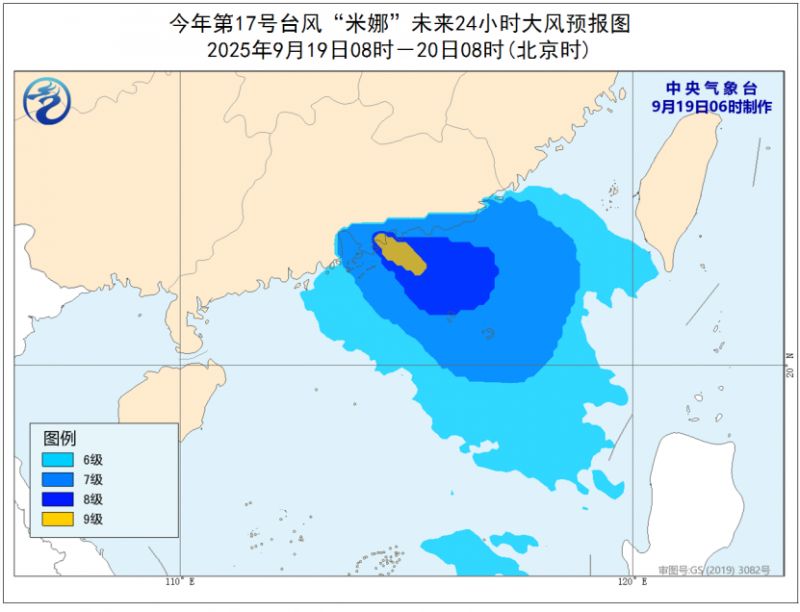 2025年台风米娜9月19日将在广东汕尾至台山一带沿海登陆